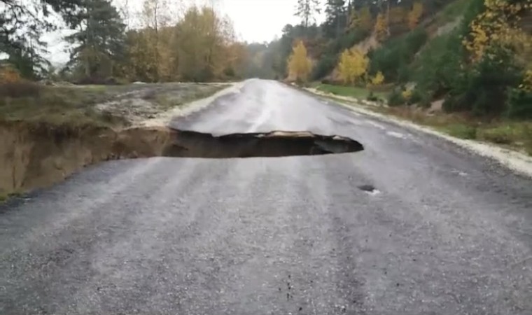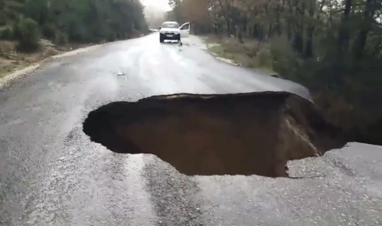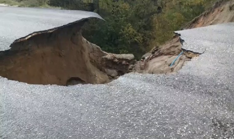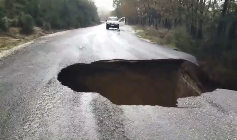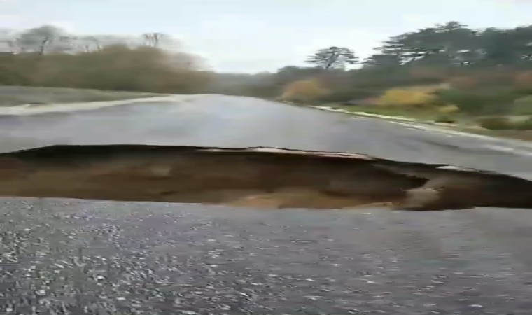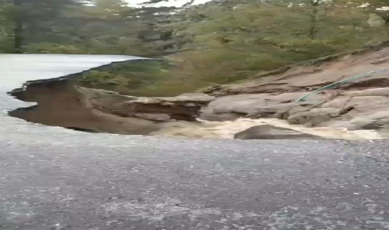 Çanakkale’nin Yenice ilçesinde etkili olan sağanak yağış sonrası yol çöktü.