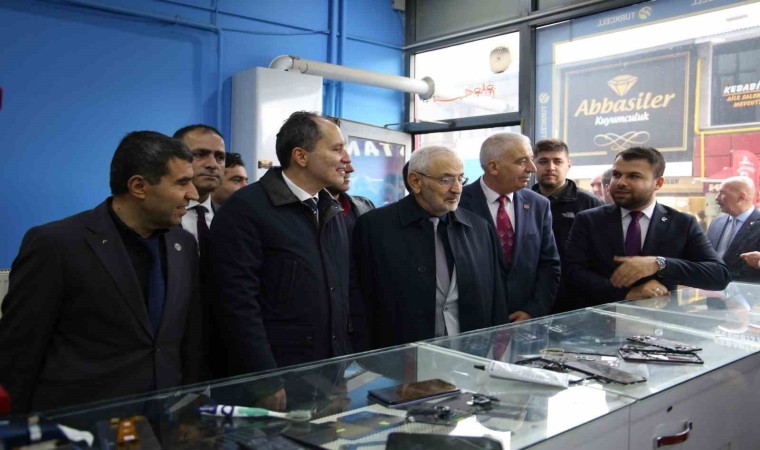 Partililerle birlikte parti binasını gezen Erbakan, Yeniden Refah Partisi İl Başkanı Cemal Yurtlu’dan bilgi aldı.