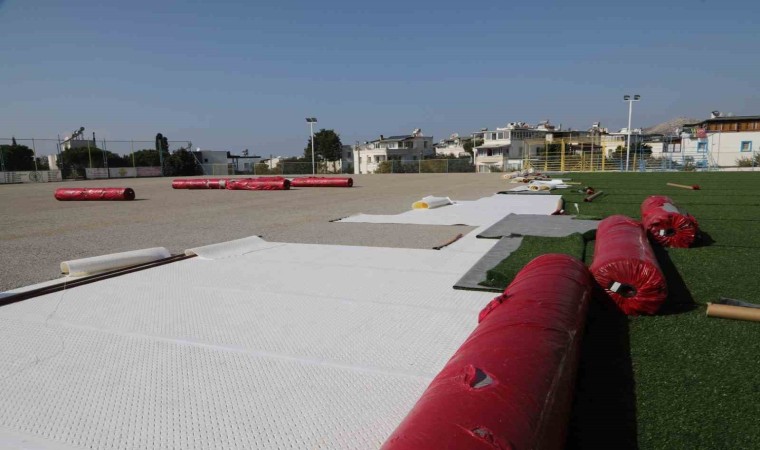 Bodrum Belediyesi Fen İşleri Müdürlüğü ve Kültür Sosyal İşler Müdürlüğü Spor Hizmetleri Bürosu ekiplerinin yaptığı ilk incelemelerde saha zemininin bozuk olduğu, saha eğiminin hatalı ve drenaj sisteminin yetersiz olduğu tespit edilmiş, bu nedenle yenileme kararı alınmıştı. Yapılan çalışmalarda, yabani otların temizlenmesi, zemin eğiminin düzeltilmesi, drenaj hatlarının kazılması, elektrik hatlarının yenilenmesi, mıcır serimi ve üst zemin sıkılaştırma işlemleri gibi aşamalardan geçildi. Aynı zamanda suni çim seriminden önce saha, sporcuların düşmeleri durumunda darbeleri emerek çarpışma enerjisini azaltan, saha zeminin kullanım süresini uzatarak deformasyonu en aza indiren “shock ped” ile donatıldı.
