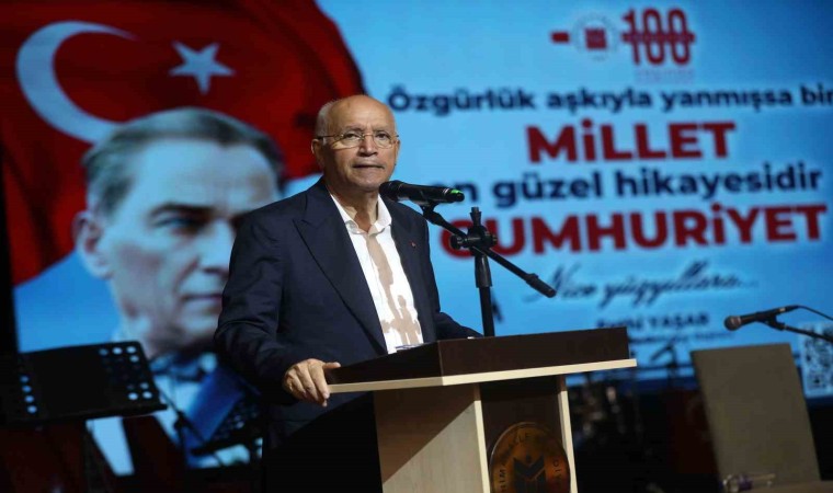 Coşkunun tavan yaptığı gecede vatandaşlara seslenen Başkan Yaşar, “Hepimizin ortak kimliği olan Cumhuriyetimiz 100 yaşında. Cumhuriyet Bayramımız ulus olarak bizlerin en büyük bayramı. Cumhuriyet Bayramımız bizim eğlence günümüz değil ulus bilincini hep birlikte yaşadığımız gündür. Kendini İstiklal uğruna feda eden Hasan Tahsin gibi yurtseverler, toprak olacağını bile bile biran olsun geri dönmeyi düşünmeyen 15’likler dün de vardı bundan sonra da olacak. Çiğiltepe’yi yarım saat içinde alamadığı için intihar eden Albay Reşat Çiğiltepe gibi onurlu yurtseverler, İsmet İnönü, Ali Fuat Cebesoy, Kazım Karabekir, Refet Bele gibi vatan sevdalıları dün de vardı bundan sonra da olacak” dedi.