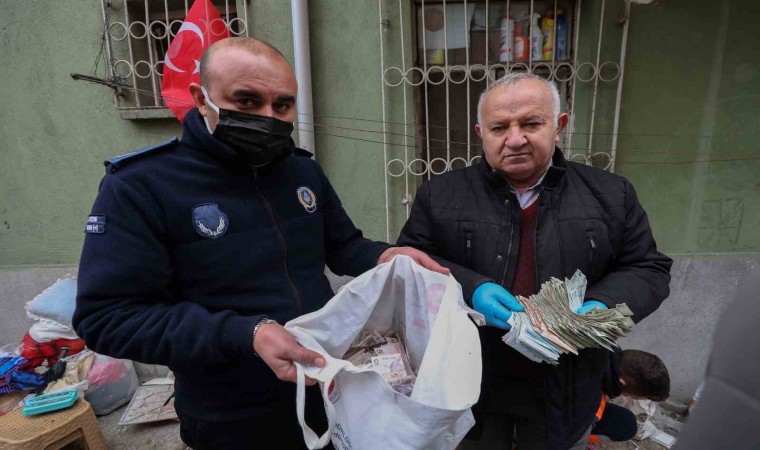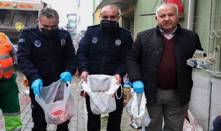 Ekiplere evini temizletmek istemeyen Akbaş’ın evinden 3 ton çöp ve 20 bin TL para çıktı.