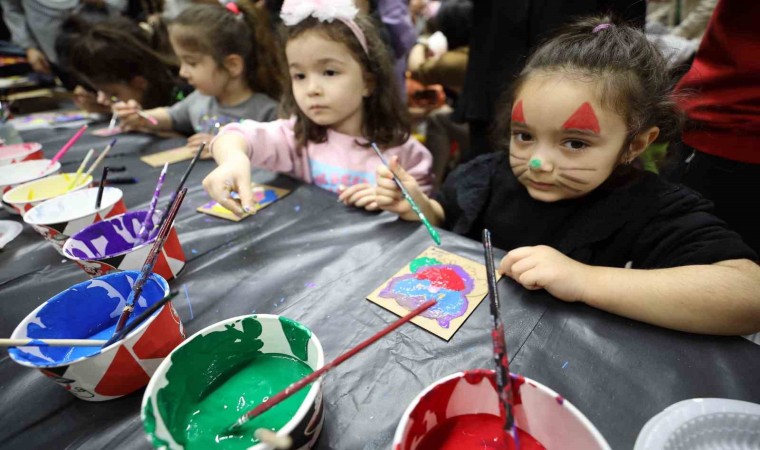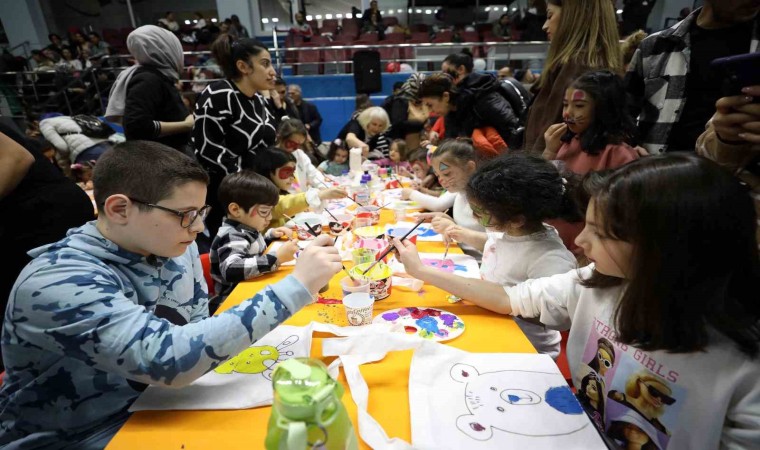 Çocuk Şenliği’nde ahşap boyama, çanta boyama, alçı boyama, çim adam yapımı gibi birbirinden renkli ve eğitici stantlar Yenimahalleli çocuklar için kuruldu.