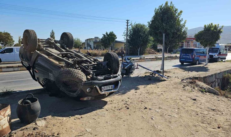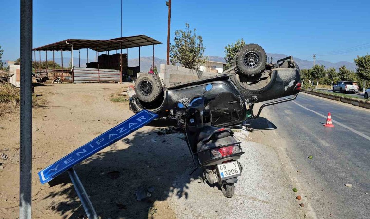 Aydın’ın Yenipazar ilçesinde refüje çarpan kamyonetin takla atması sonucu 2 kişi yaralandı.