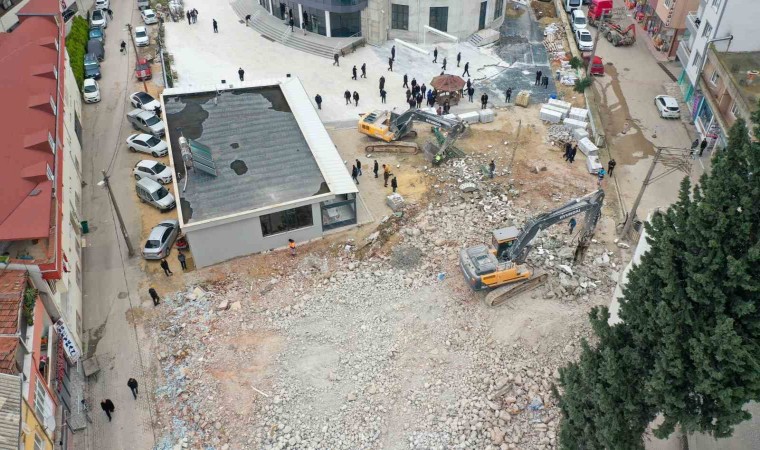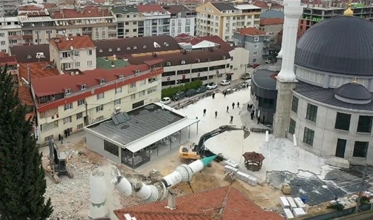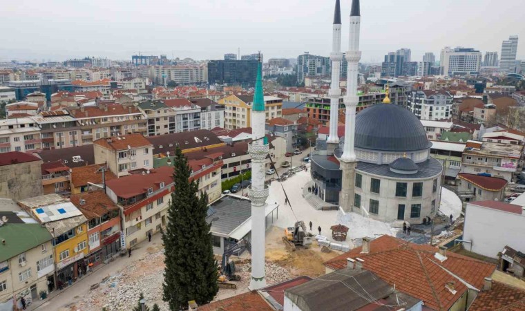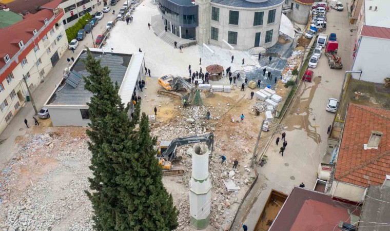 Bursa’da FETÖ’nün yıkılan okulunun yerine yapılan yeni cami inşaatı tamamlandı. Yeni cami tamamlanınca eski caminin minaresi kontrollü olarak yıkıldı. O anlar dron ile havadan görüntülendi.