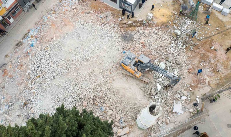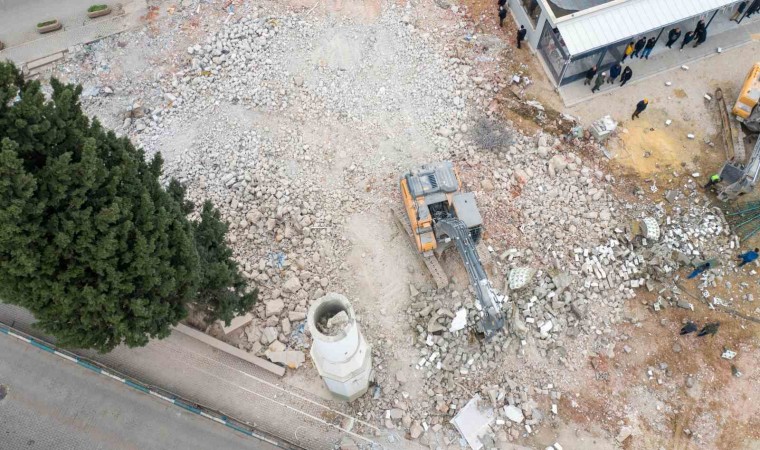 İş makinesinin önce deldiği minare daha sonra çelik halat ile bağlanıp başka bir iş makinesi ile çekilerek aşağıya indirildi. Yerleşim yerleri ile iç içe olan dev minare büyük bir ustalık ile hiç bir eve zarar vermeden yıkıldı. O anlar dron ile havadan da görüntülendi.