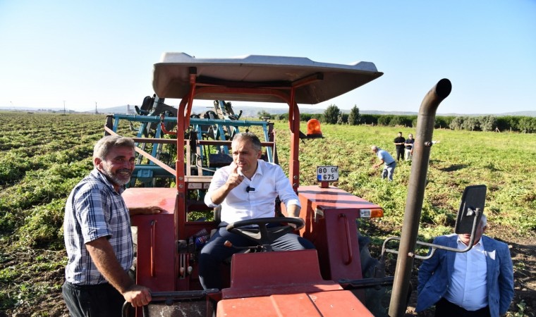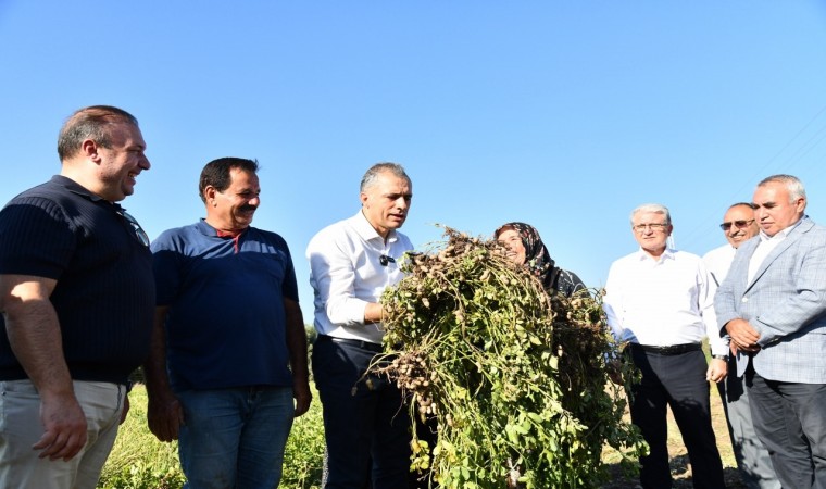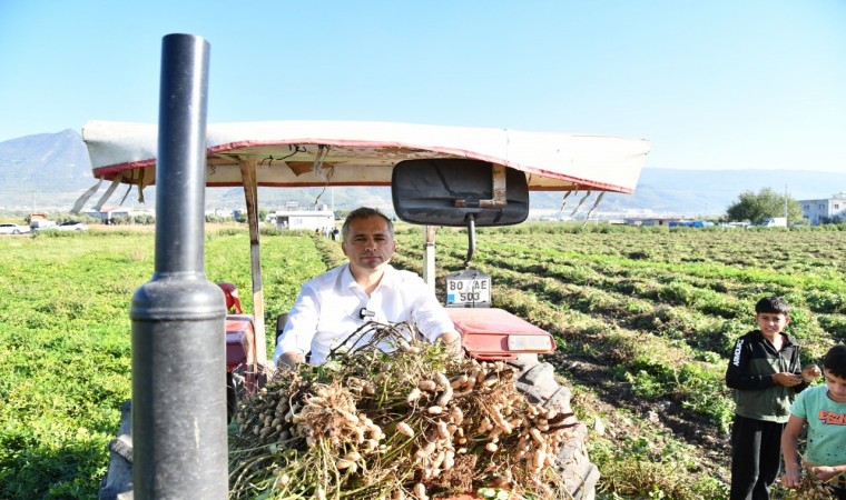 Osmaniye Belediye Başkanı İbrahim Çenet’te, merkeze bağlı Aslaniye Köyü’ndeki yerfıstığı tarlasına giderek, çiftçi ve tarlada çalışan işçiler ile bir araya geldi. Başkan İbrahim Çenet, “Bugün bu tarlamızdaki fıstık hasadına hep beraber konuk olduk. Osmaniye’mizde şuan fıstık hasadı yapılıyor. Yerfıstığının ana vatanı Türkiye’mizde başkenti Osmaniye. Bugün bizde 18 bin dekarlık alanda, sulama birliğimizin de 270 üyesiyle buraya ekimleri sonrasında bugün hasatları gerçekleştiriliyor. 14-15 Nisan’da başlayıp 15 Mayıs’a kadar devam eden o ilk dikimlerin ürünleri olan yerfıstıklarımızı bugün tarladan söküyoruz" dedi.