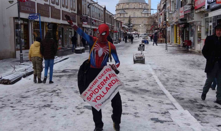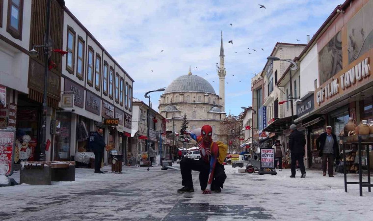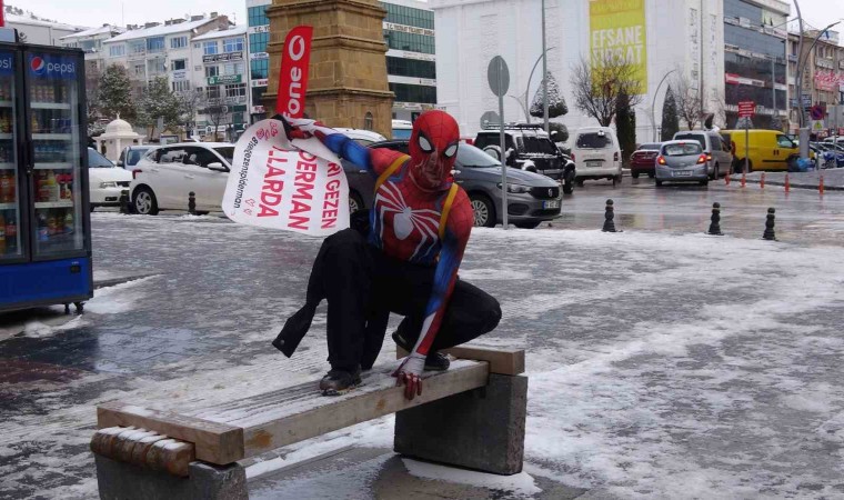 Yozgat’ta son günlerde etkili olan soğuk havaya yakalanan örümcek adam, kostümünün üzerine mont giymek zorunda kaldı. Yerli örümcek adamın bir sonraki durağı ise Kırıkkale olacak.