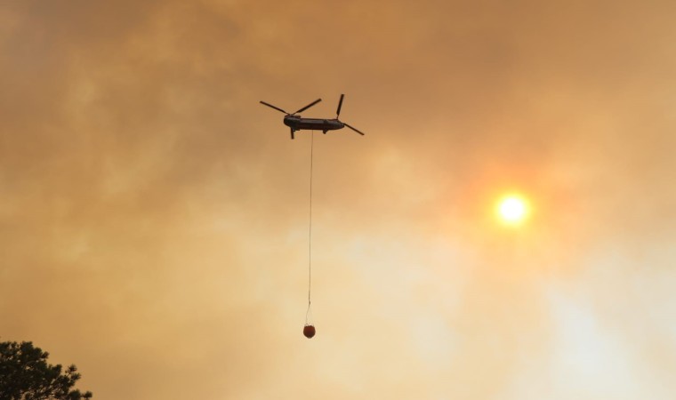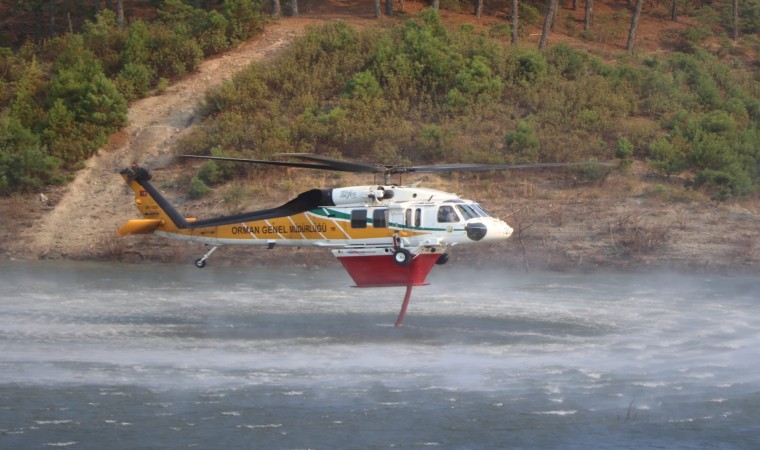 Muğla’nın Ula ilçesinde çıkan orman yangınına müdahalede bulunan yerli ve milli ’Nefes T-70’ yangın söndürme helikopteri, alevlerle mücadelede etkili rol oynuyor.