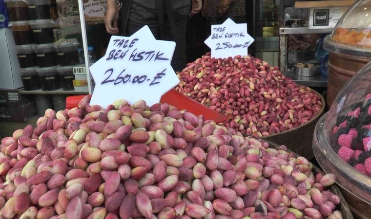 Gastronomi kenti Gaziantep’in gururu olan Antep fıstığı tezgahlarda yerini almaya başladı. Antep fıstığının kilogramı 250 ila 280 TL arası başlayan fiyatlarla piyasaya sürüldü. Antep fıstığında dolu nedeniyle rekoltenin düştüğünü belirten fıstık satıcısı Mıraz Şahin, “Genellikle Gaziantep’in Barak, Nizip, Oğuzeli ilçelerinde yetiştiği gibi Şanlıurfa Ceylanpınar’a kadar gidiyor. Bu sene rekoltemiz düştü. Beklediğimiz kadar verim alamadık. Normalde bu sene fıstığın çok verdiği seneydi ama istediğimiz mahsulleri alamadık çünkü kışın yoğun bir dolu yediği için tam beklediğimiz gibi olmadı” dedi.