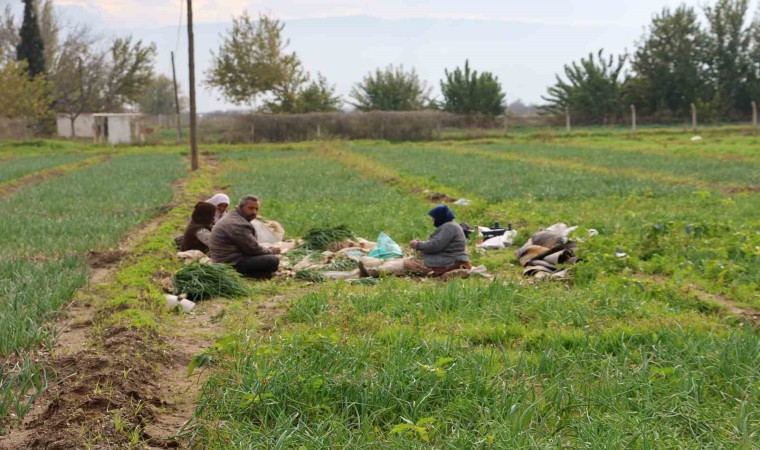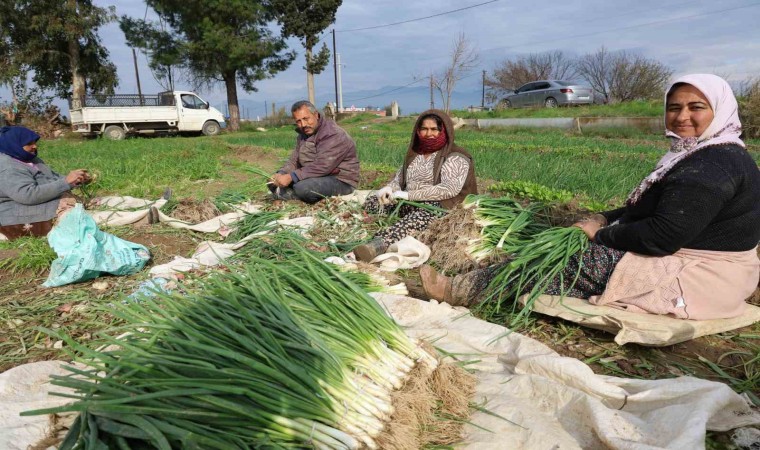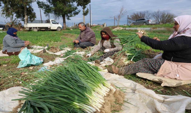 Aydın’da zorlu şartlarda hasat edilen yeşil soğanın kilogramının tarlada 10 liradan alıcı bulması üreticileri mutlu ediyor.