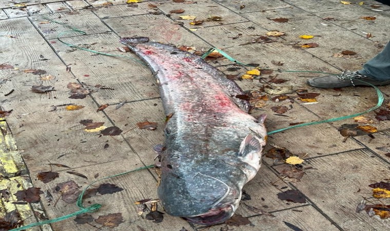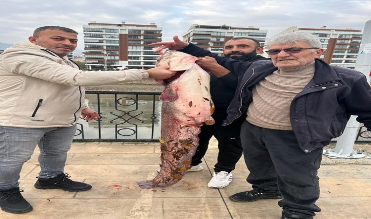 Hacılar Meydanı Mahallesi civarında oltasına takılan avını çekemeyen 71 yaşındaki Taşdemir, oğlu Tuncay ve arkadaşından yardım istedi. Suyun içinde çırpınan dev balık güçlükle kıyıya çıkarabildi.