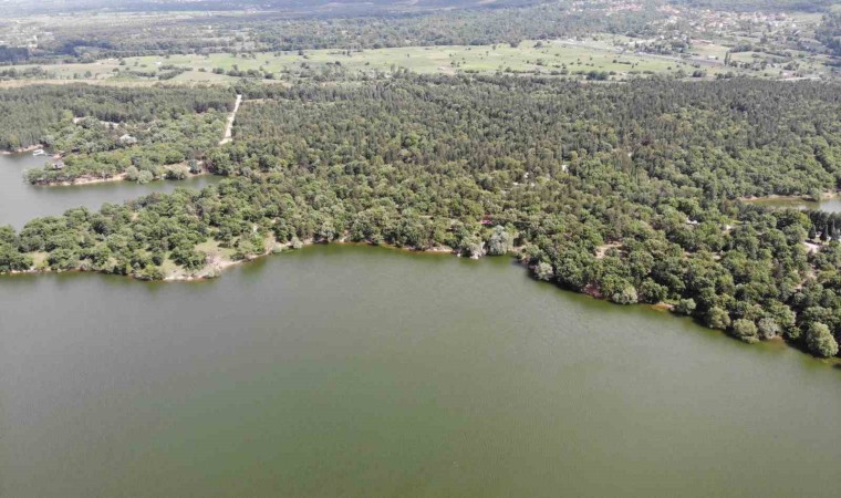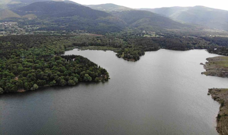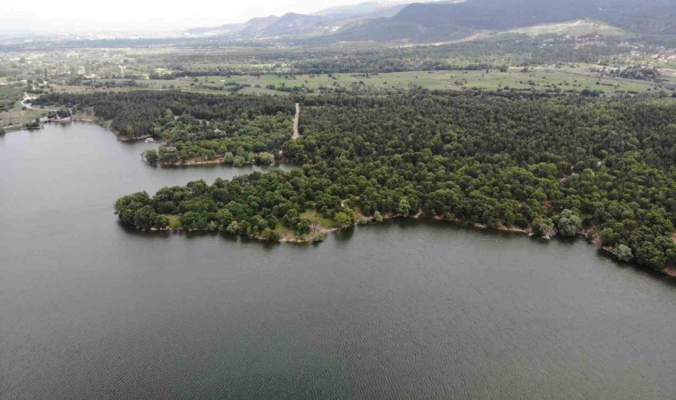 Mavi ile yeşilin buluştuğu Enne Barajı ve Tabiat Parkı, havadan da görüntülendi.