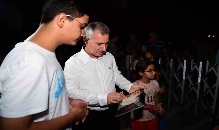 Akşam saatlerinden itibaren görevliler nezaretinde sıraya girerek teleskoptan ayı gözlemleyen çocuklar, gökyüzünün derinlikleri ile tanıştılar. Dolunay üzerinde bulunan kraterleri yakından görmek için adeta birbirileriyle yarışan öğrenciler defalarca sıraya girerek ayla ilgili heyecanlarını yatıştırmaya çalıştılar. Çocuklara ayrıca uzay, gezegenler, yıldızlar ve güneşle alakalı bilgiler verildi.