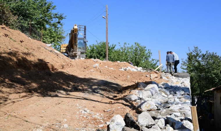 Yeşilyurt Belediye Başkanı Mehmet Çınar, Kendirli ile Samanköy Mahallelerini birbirine bağlayan yolun güvenli hale getirilmesi maksadıyla başlatılan taş duvar ve yol genişletme çalışmalarını inceledi.