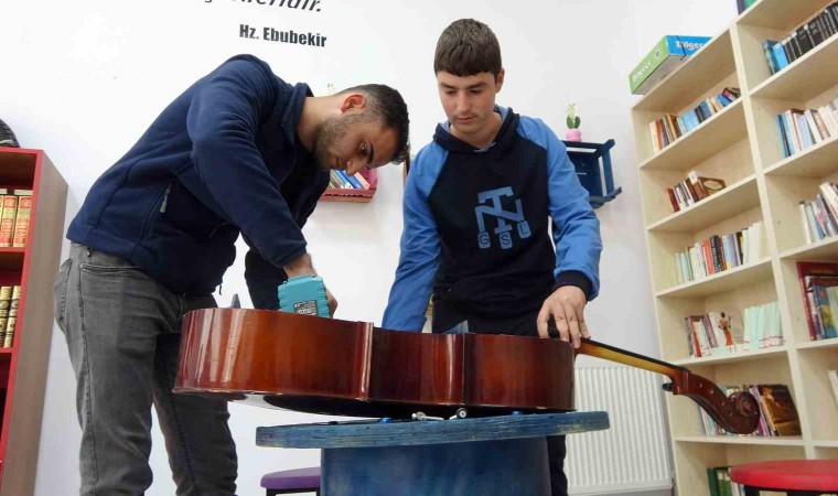 Kullanılamayacak müzik aletlerini kitaplığa çevirdiklerini söyleyen müzik bölümü 9. sınıf öğrencisi Belinay Altınok da, “Biz okulumuzda atık malzemelerden kütüphane yaptık, boş zamanlarımızı burada geçirerek değerlendiriyoruz. Kullanmadığımız müzik aletlerimizden kütüphanemizi oluşturduk. Kasalardan tutun otomobil lastiklerine kadar birçok malzemeyi değerlendirdik. Doğaya kakımız olsun ve atık malzemeleri değerlendirelim diye böyle bir kütüphane oluşturduk” ifadelerine yer verdi.