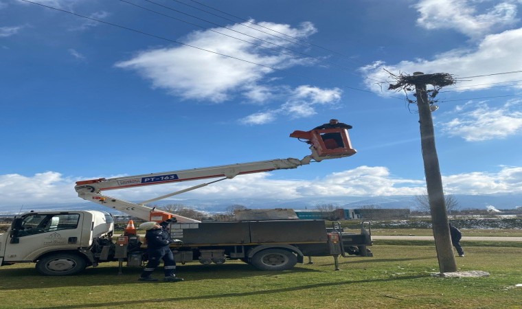 Bolu’da rüzgar sebebiyle devrilen leylek yuvasının yerine yenisini yaptıran iş adamına teşekkür plaketi verildi.