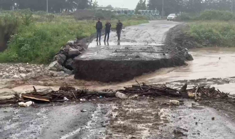 Düzce'de şiddetli yağışlar, görevlilerin güvenliği için büyük çaba sarf ettiği geçici yaya köprüsünü suyun debisinin artmasıyla yıktı. Batı Karadeniz Bölgesi'nde etkili olan aralıklı yağışlar, Düzce'nin Yığılca ilçesinde rekor seviyede yağışa neden oldu, metrekareye 137,8 kilogram yağmur düştü. Bu yoğun yağışlar su taşkınlarına yol açarken, Küçük Melen Çayı'nın su seviyesi de yükseldi. Dere yatağından sürüklenen odun ve ağaç parçaları, geçici olarak inşa edilen yaya köprüsünün kısmen tıkanmasına neden oldu ve sonuç olarak su, köprünün üstünden taşmaya başladı. Düzce Valiliği İl Özel İdaresi ekipleri, temizleme çalışmalarına hemen başladı ve önlemler almaya çalıştı, ancak maalesef menfez boruları sürüklendi ve geçici köprü yıkıldı.