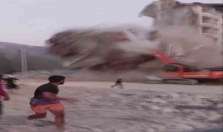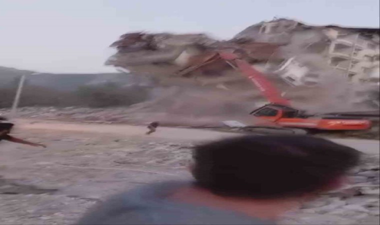 Kahramanmaraş merkezli depremlerde ağır hasar alan Hatay’da binaların yıkımları ve enkaz kaldırma çalışmaları aralıksız sürüyor. Antakya ilçesi Armutlu Mahallesi’nde Gündüz Caddesi’nde yıkım esnasında bina, iş makinesinin üzerine çöktü. İş makinası operatörü kazayı yara almadan atlatırken binanın çökme anında yaşanan panikse anbean cep telefonu kamerasına yansıdı.