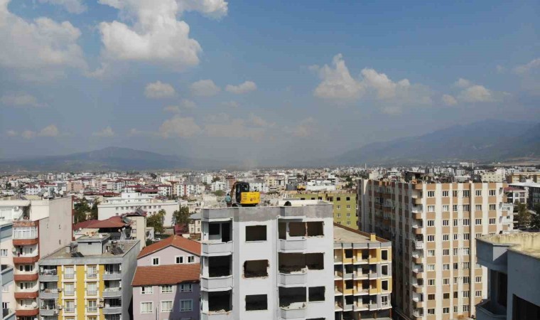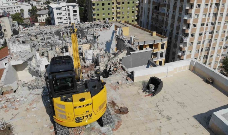 Kahramanmaraş merkezli depremlerden etkilenen Osmaniye’de, Esenevler Mahallesi’nde bulunan 3 bloktan oluşan 11 katlı Çağlar Sitesi’nin A bloğunun kontrollü yıkımı için 10 tonluk iş makinesi vinç yardımıyla binanın üzerine çıkarıldı. Hasarlı binanın çevresinde bulunan hasarsız binaların yıkımdan zarar görmemesi için iş makinesi vinç yardımıyla 11 katlı binanın en üst katına çıkarıldı. Yıkım en üst kattan aşağı olacak şekilde yapılmaya başladı.