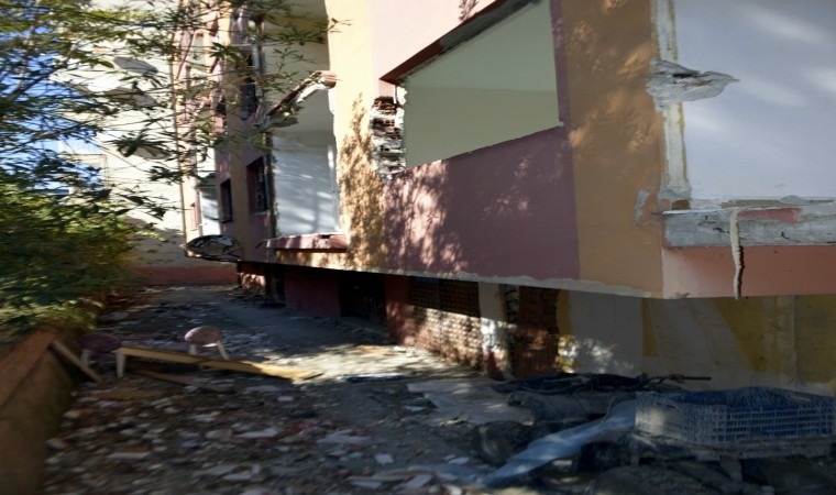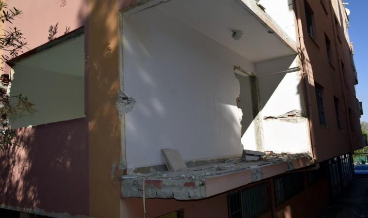 Tehlike saçan binadan parça parça betonların döküldüğü gözlemlenirken, bunun da can güvenliği için tehdit oluşturduğu ifade edildi.