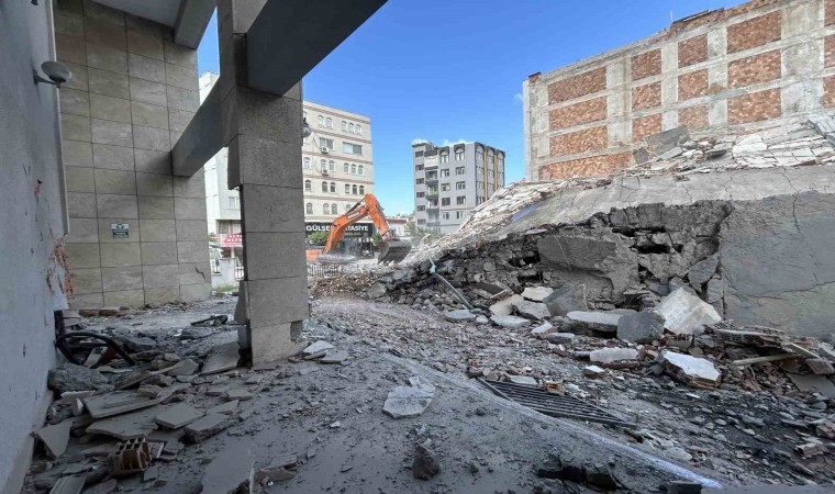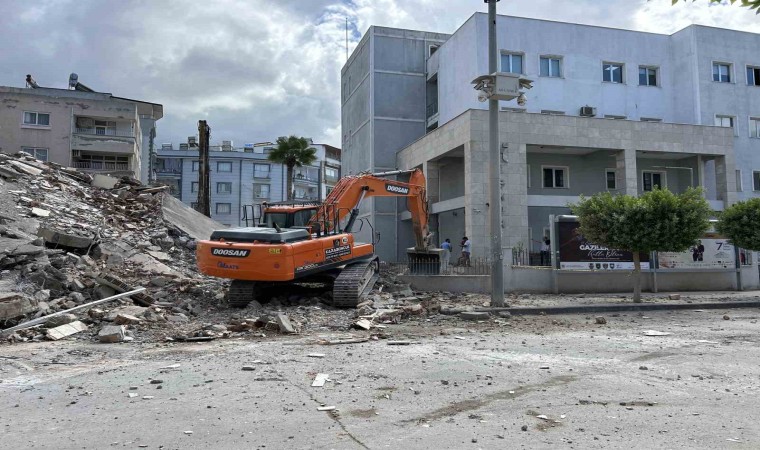 Kahramanmaraş merkezli depremlerde ağır hasar alan Hatay’da mahkeme süreci sona eren binaların yıkım ve enkaz kaldırma çalışmaları aralıksız sürüyor. İskenderun ilçesi şehir merkezi Kurtuluş Mahallesi’nde bulunan 6 katlı apartman da iş makinesiyle kontrollü olarak yıkılmak istendi. Kontrollü olarak yıkılmak istenen bina yıkım esnasında yan tarafta bulunan İŞKUR binasının bahçesine devrildi. Bahçe zarar görürken yıkıma mesaide yakalanan İŞKUR personelleri ve çevredeki vatandaşlar panik yaşadı. İŞKUR bahçesine devrilen molozlar iş makineleriyle temizlendi.