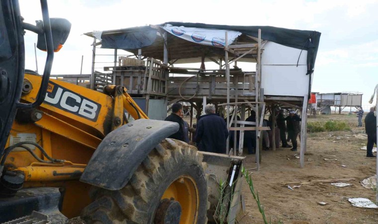 Antalya’nın Aksu ilçesinde deniz kaplumbağalarının yuvalama alanı olduğu gerekçesi ile Kumköy Sahili’nde bulunan 700 çardak için alınan yıkım kararının ardından çardak sahiplerine verilen süre bugün sona erdi. Sabah saatlerinde yıkım kararını uygulamak üzere çardakların bulunduğu Kumköy sahiline gelen Aksu Belediyesi ekipleri ile vatandaşlar karşı karşıya geldi. Vatandaşlar alana gelen iş makinelerinin önünü araçlarla keserek girişlerine izin vermedi. Belediye yetkilileri ile vatandaşlar arasında çardakların yıkımı konusunda uzun süre tartışma yaşandı. Vatandaşlar ile belediye görevlileri arasında uzun süre yapılan görüşmeler sonucunda sahipsiz çardakların yıkılması, kalanlar için ise süre verilmesi kararlaştırıldı.