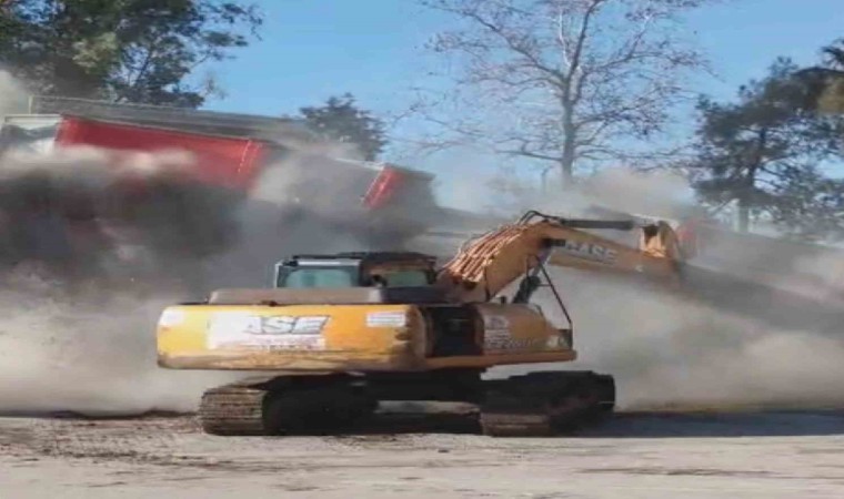 Depremin yerle bir ettiği Hatay’da hasarlı binaların yıkımında sona gelindi. Payas ilçesinde bulunan itfaiye amirliği binası da ekipler tarafından kontrollü olarak yıkıldı. Yıkım esnasında iş makinası, 2 katlı binanın altında kalmaktan son anda kurtuldu. Yaşanan panik anı ve operatörün hızlı manevrasıysa cep telefonu kamerasına yansıdı. Yıkım sonrası iş makinasında maddi hasar oluştu.