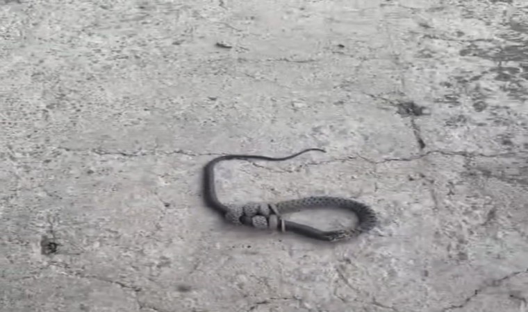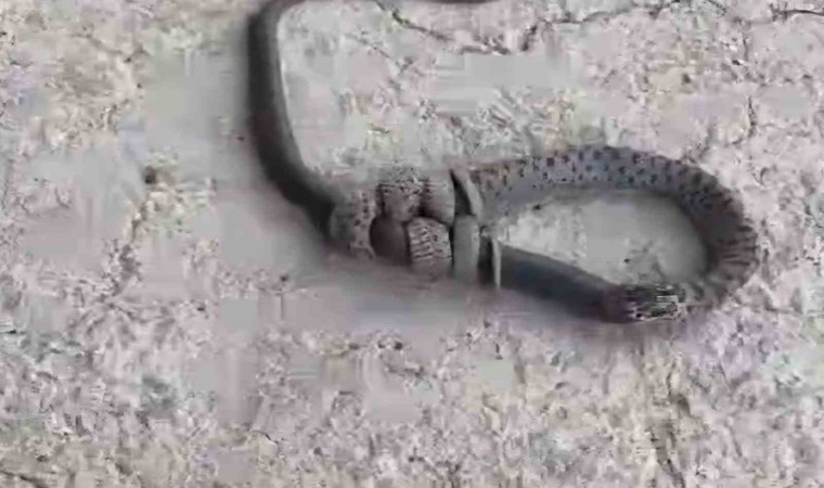 Elazığ’ın Kovancılar ilçesinde bir yılan, başka bir yılanı yutarken görüntülendi.