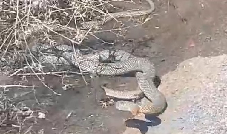 Çankırı’da iki yılanın çiftleşme dansı vatandaşlar tarafından cep telefonu ile görüntülendi.