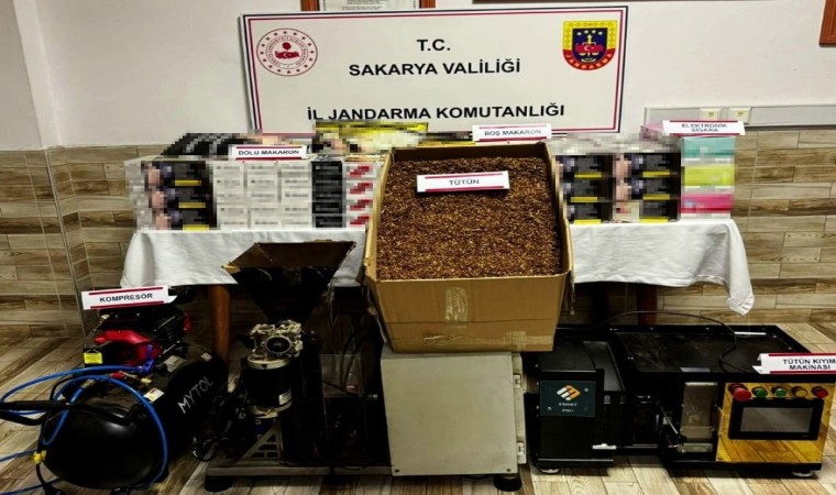 Karasu İlçe Jandarma Komutanlığı sorumluluk bölgesinde D.A. (60) isimli kadının gözaltına alındığı operasyonda 35 bin 700 adet bandrolsüz boş makaron, 4 bin 400 adet bandrolsüz dolu makaron, 170 adet elektronik sigara, 162 adet nargile tütünü, 90 adet kıyılmış tütün, 10 kilogram kıyılmış tütün, 1 adet tütün dolum makinesi, 1 adet hava kompresörü ve 1 adet tütün sarma makinesi ele geçirildi.