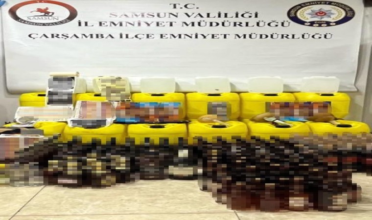 Samsun’da polis ekiplerinin yılbaşı öncesi yaptığı baskında çok sayıda etil alkol, kaçak içki, bandrol ve araç gereçler ele geçirildi.