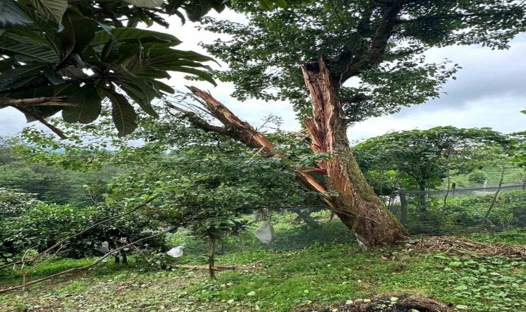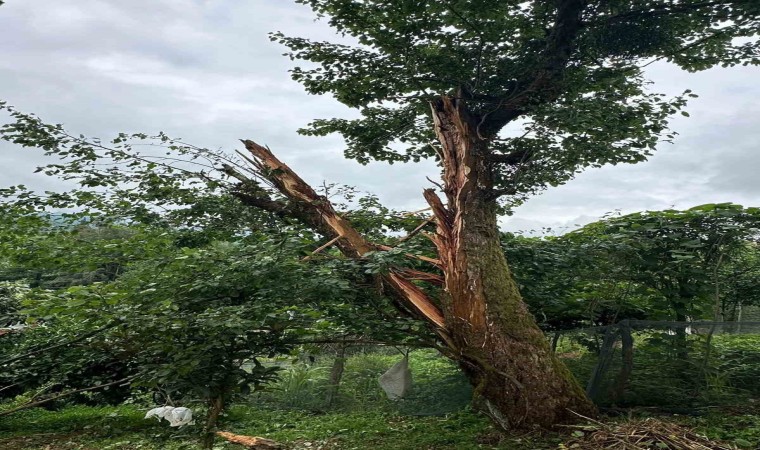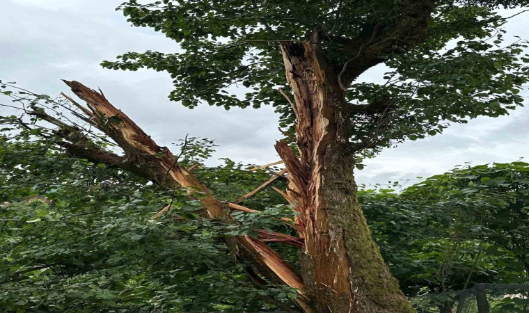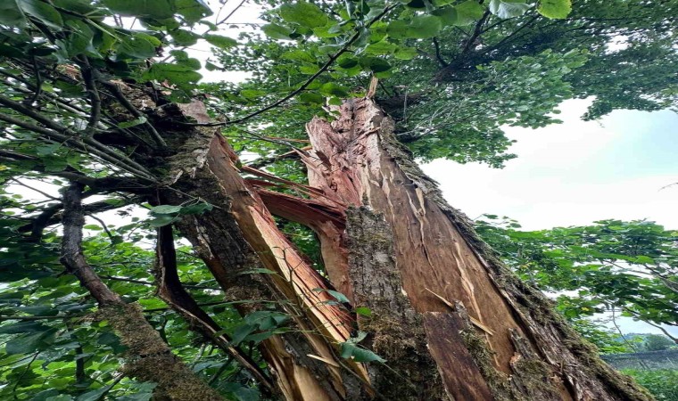 Rize’de yıldırım düşmesi sonucu armut ağacı ortadan ikiye bölündü.