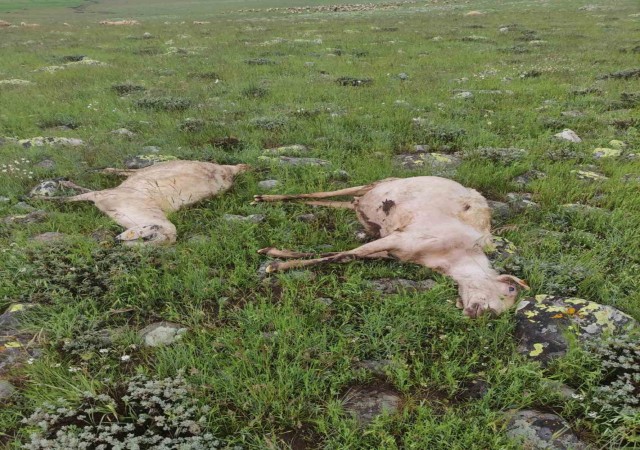 Yıldırım çarpması sonucu 5 koyun telef oldu