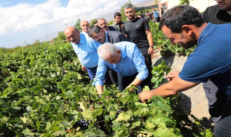 Yıldırım, Vali Hamza Aydoğdu ve il protokolüyle birlikte, Erzincan’ın tescilli lezzetlerinden Cimin üzümünün hasadına katıldı.