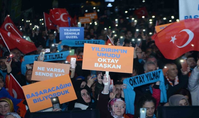 Cumhurbaşkanı Recep Tayyip Erdoğan’ın yeniden aday gösterdiği Yıldırım Belediye Başkanı Oktay Yılmaz, Bayrak Alanı’nda coşkuyla karşılandı. Meşale koridorundan geçerek Yıldırımlıları selamlayan Başkan Oktay Yılmaz, “Yıldırım’ın şahlanış dönemi başlıyor” dedi.
