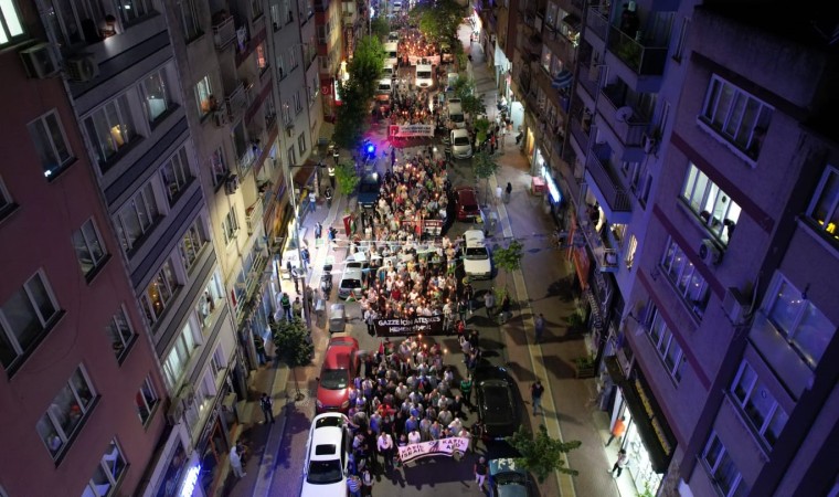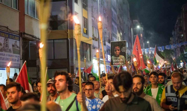 Akşam namazının ardından Gökdere Meydanı’nda toplanan kalabalık, ellerindeki meşalelerle Bayrak Alanı’na doğru yürüyüşe geçti. İsrail’in saldırılarını kınayan ve Filistin’e destek sloganları atan kalabalık, Bayrak Alanı’nda düzenlenen programda Kur’an-ı Kerim tilavetini dinleyip dua etti. Yıldırım Belediye Başkanı Oktay Yılmaz’ın ve Özgür-Der Genel Başkanı Rıdvan Kaya’nın konuşmalarının ardından Grup Yürüyüş, Filistin için hazırladığı ezgileri seslendirdi.