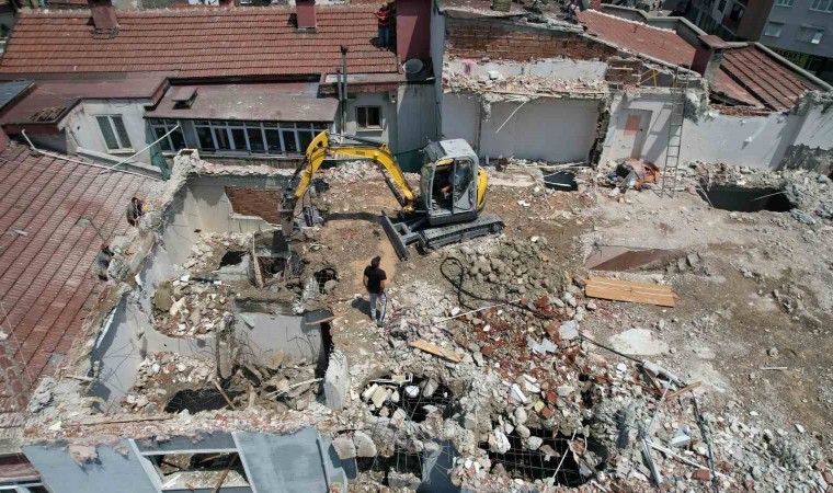 Yıldırım Belediyesi, bir taraftan ilçenin bahtını değiştirecek kentsel dönüşüm hamlelerini planlarken diğer taraftan da riskli durumdaki binaların yıkımını gerçekleştiriyor. 6 Şubat asrın felaketinden sonra belediye teknik ekipleri ile birlikte yapıların deprem risk durumları tespiti için çalışmalara başlayan Yıldırım Belediyesi, sahada gerçekleştirilen çalışmalar sırasında 14. Yeşil Sokak’ta bulunan yapıda kolon kesildiği yönünde gelen şikâyet üzerine belediye ekiplerince zemin ve asma katta taşıyıcı sistemde bazı kolonların ve kirişlerin yerinde bulunmadığı ve risk teşkil ettiği tespit edildi. Yapı malikleri herhangi bir başvuruda bulunmadığından 6306 sayılı ‘Afet Riski Altındaki Alanların Dönüştürülmesi’ hakkındaki kanun hükümlerince riskli durumdaki yapının yıkımına başlanıldı.