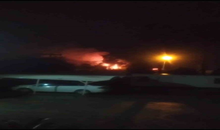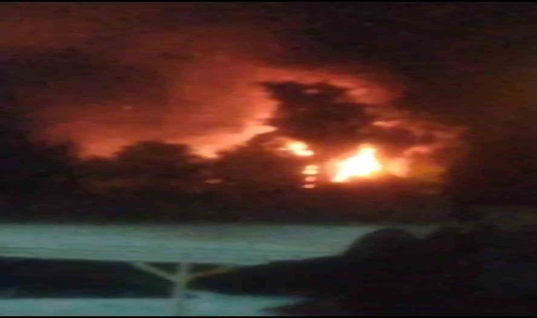 Hatay’ın Dörtyol ilçesinde yıldırımın isabet ettiği ağaçlık alan alevlere teslim oldu.