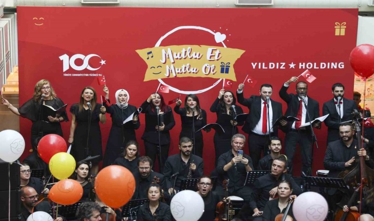 Kuruluşundan bu yana “Mutlu Et Mutlu Ol” anlayışıyla tüm paydaşlarının mutluluğunu hedefleyen Yıldız Holding çalışanlarının her yıl Kasım ayının üçüncü perşembe günü kutladığı geleneksel “Mutlu Et Mutlu Ol Günü”ne bu yıl Cumhuriyet’in 100. yıl coşkusu damga vurdu. Kutlamalar kapsamında gün boyu süren etkinliklere Yıldız Holding’in Çamlıca Kampüsü ev sahipliği yaptı. Yıldız Holding çalışanlarının bir yıl boyunca hayata geçirdikleri gönüllülük ve toplumsal fayda faaliyetlerini hep birlikte kutladıkları Mutlu Et Mutlu Ol Günü’nde, çalışanlar gün boyunca ileri dönüşüm, atıksız mutfak gibi sürdürülebilirlik temalı pek çok farklı atölyeye katıldılar ve Cumhuriyetin 100’üncü yılına atıf ile kolektif bir sanat çalışması da gerçekleştirdiler. Bugüne özel Yıldız Holding çalışanlarının katılımıyla düzenlenen hayır panayırından elde edilen gelir ise LÖSEV’e bağışlandı.