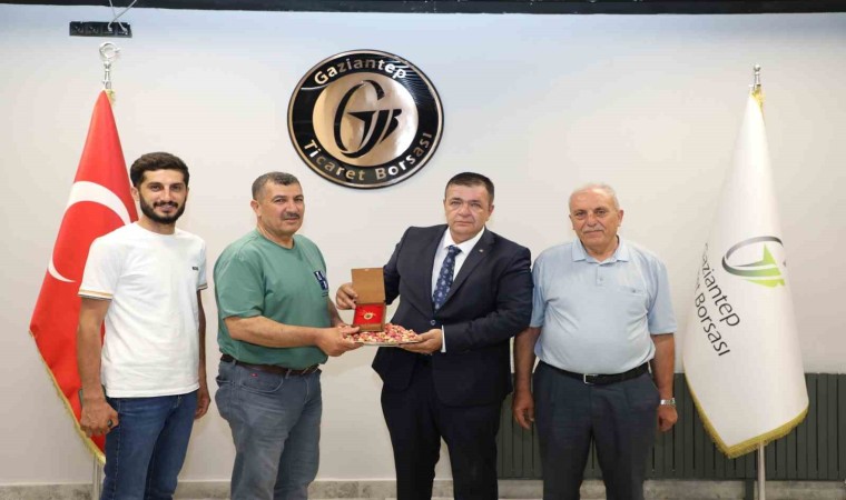 GTB Yönetim Kurulu Başkanı Mehmet Akıncı, Yönetim Kurulu Üyesi Mehmet Özmen ve Genel Sekreter Özgür Bayram’ın katılımıyla gerçekleştirilen törende, 2024 yılının ilk fıstığını yetiştiren çiftçi Abdurrahman Açıkgöz Cumhuriyet altınıyla ödüllendirildi