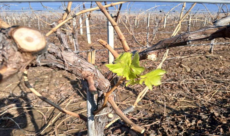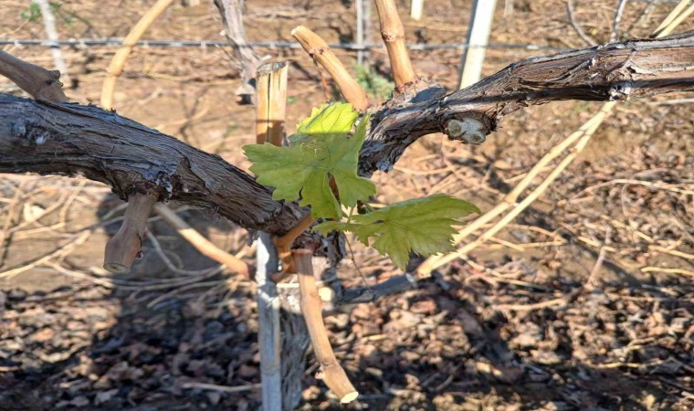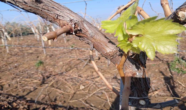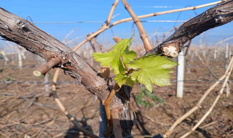 Manisa’nın Sarıgöl ilçesinin Emcelli Mahallesindeki bir üzüm bağında korkulan oldu ve bağlar uykuya geçmeden uyanmaya başladı. Hava sıcaklıklarının mevsim normallerinin üzerinde seyrettiği bölgede bağlarda budama çalışması yapılacakken yeni filiz ve yapraklarla karşılaşan üreticiler ise tedirginliklerini dile getirdi.