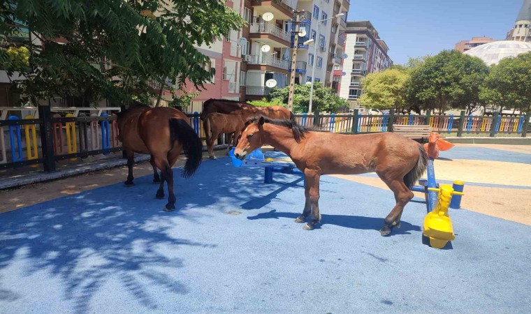 Yazın havaların ısınmasını fırsat bilip Spil dağından Yunusemre ilçesinde bulunan Merkezefendi Parkına inen yılkı atları bir aydır parkta kalıyor. Parkı kendilerine mesken tutan atlar mahalle sakinleri tarafından besleniyor.
