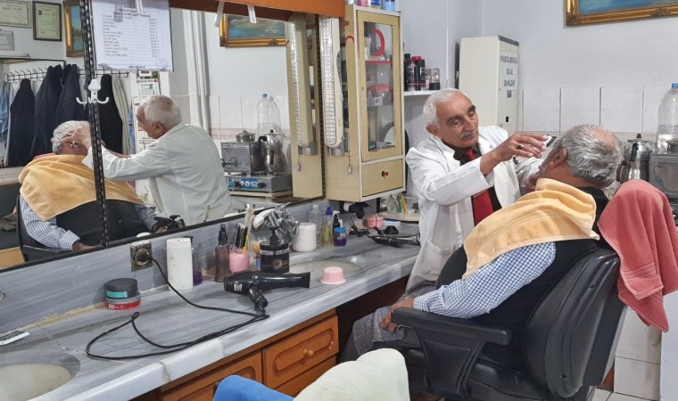 Çorum’un Sungurlu ilçesinin en eski berberlerinden olan 77 yaşındaki Hasan Çağlanoğlu ve 69 yaşındaki Servet Çıtak, yaklaşık 60 yıl önce başladıkları mesleklerini, aynı iş yerinde şevkle devam ettiriyor.