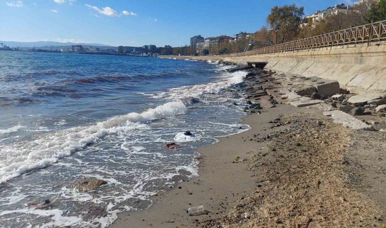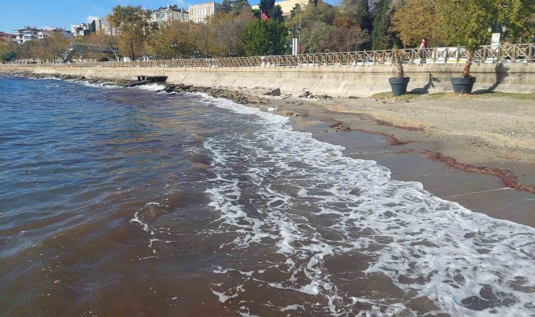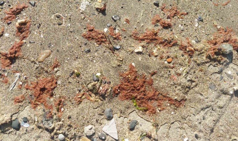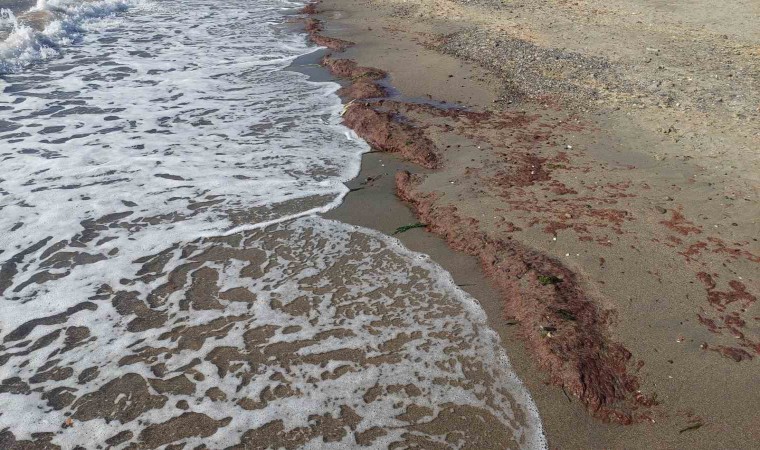 Meteoroloji Genel Müdürlüğü tarafından yapılan uyarının ardından Tekirdağ kıyılarında etkili olan lodos, yine kızıl yosun getirdi.