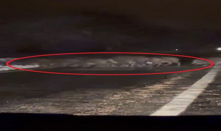 Bursa’nın dağ ilçelerinden Keles’te yoğun kar yağışı sonrası domuz sürüsü yiyecek aramak için karayoluna indi. O anlar anbean kameraya yansıdı.