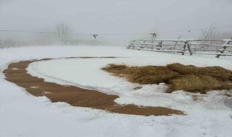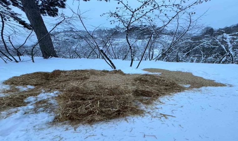 Sakarya’nın Akyazı ilçesinde hayvsanseverler, karlı havada yiyecek bulmakta zorlanan yaban hayvanları için belirlenen noktalara kuru ot, saman, buğday, yulaf ve yaklaşık 500 kilogram ekmek bıraktı.