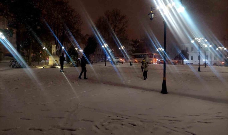 Gece saatlerinde dışarıya çıkan vatandaşlar kar yağışının tadını doyasıya çıkardı.