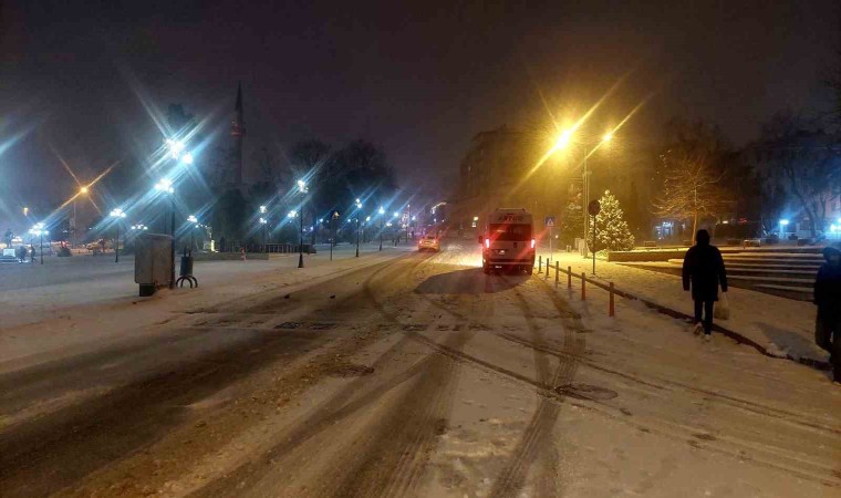Tekirdağ’da sabah saatlerinde başlayan kar yağışı gece yarısına kadar sürdü.