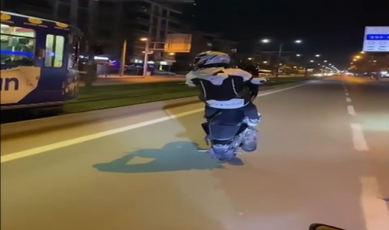 Gaziantep Emniyet Müdürlüğü’ne bağlı Trafik Denetleme Şube Müdürlüğü ekipleri, sosyal medya ihbarıyla yoğun trafiğin olduğu caddede akrobatik hareketler yaparak motosikletin önünü kaldıran E.Ç. isimli şahsı tespit etti. Yakalanan şahsın 100 ceza puanını doldurduğu aday sürücü belgesinin iptal edildiği belirlendi.