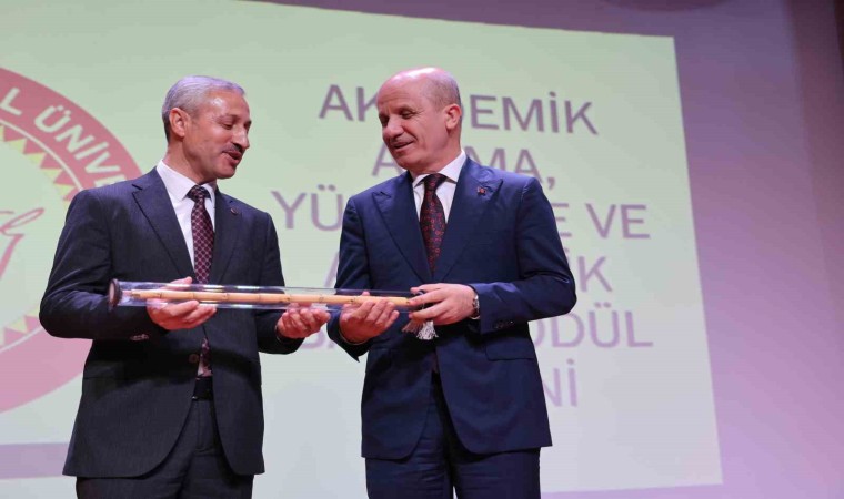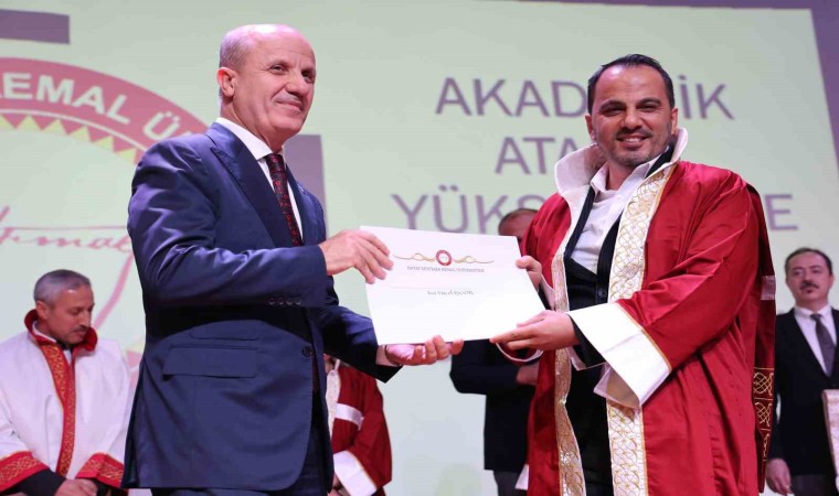 Mustafa Kemal Üniversitesi Rektörü Veysel Eren, YÖK Başkanı Erol Özvar’a ney enstrümanı hediye ederken, Vali Yardımcısı Gökay İçen’e plaket takdim etti. Etkinliğin sonunda YÖK Başkanı Özvar, üniversite hocalarına cübbelerini giydirip başarı belgeleri takdim etti.